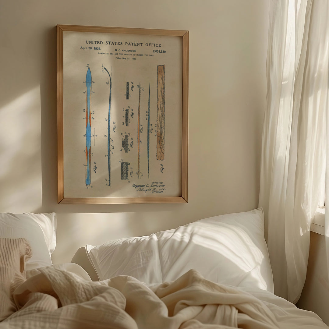 We hand select each design from the US Patent Office database, and apply watercolor to bring it to life. Every design is printed and framed in Kentucky using premium oak wood, crystal clear glass, fine art paper, and archival inks.