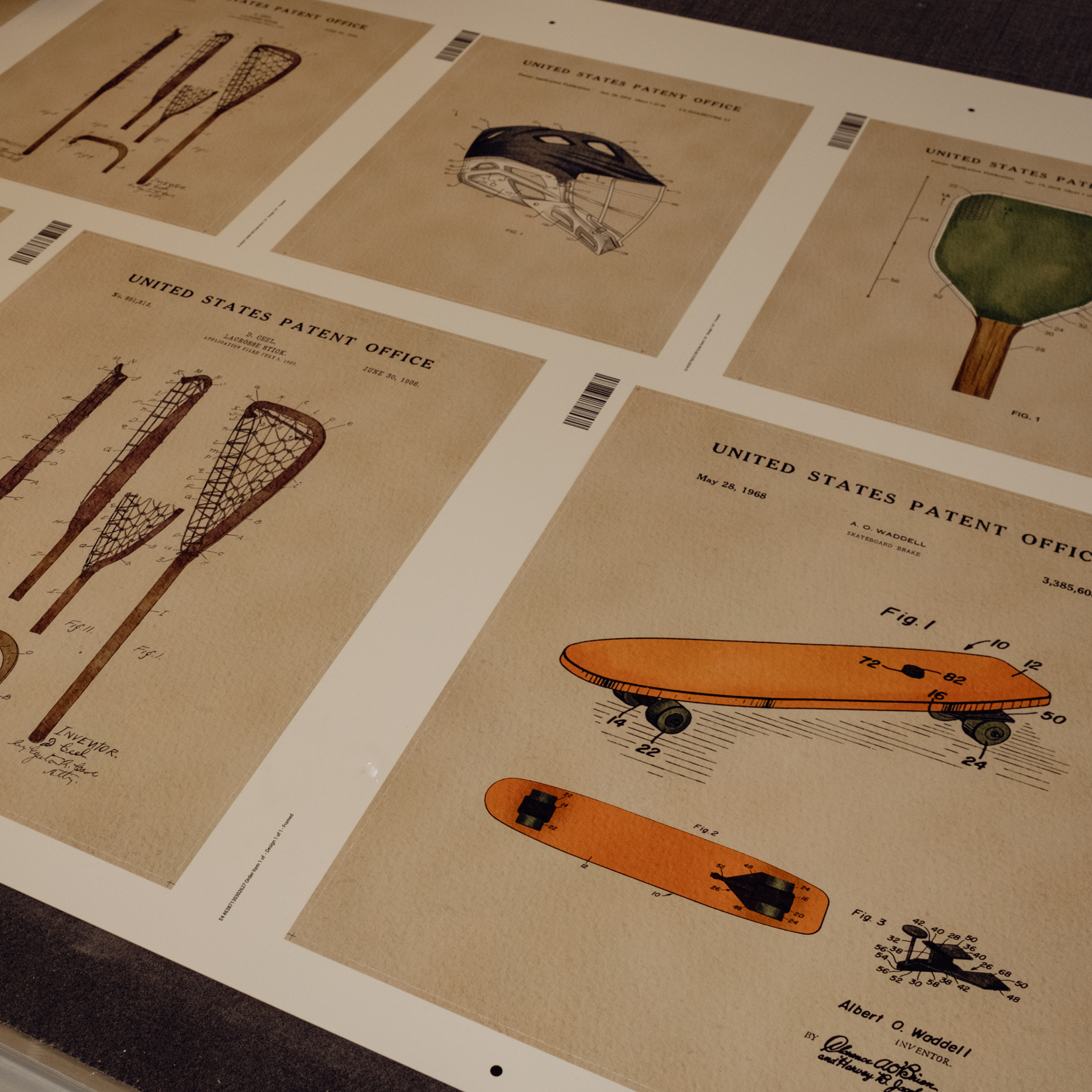 Each patent design celebrates the history and beauty of what they love most - their hobbies.
